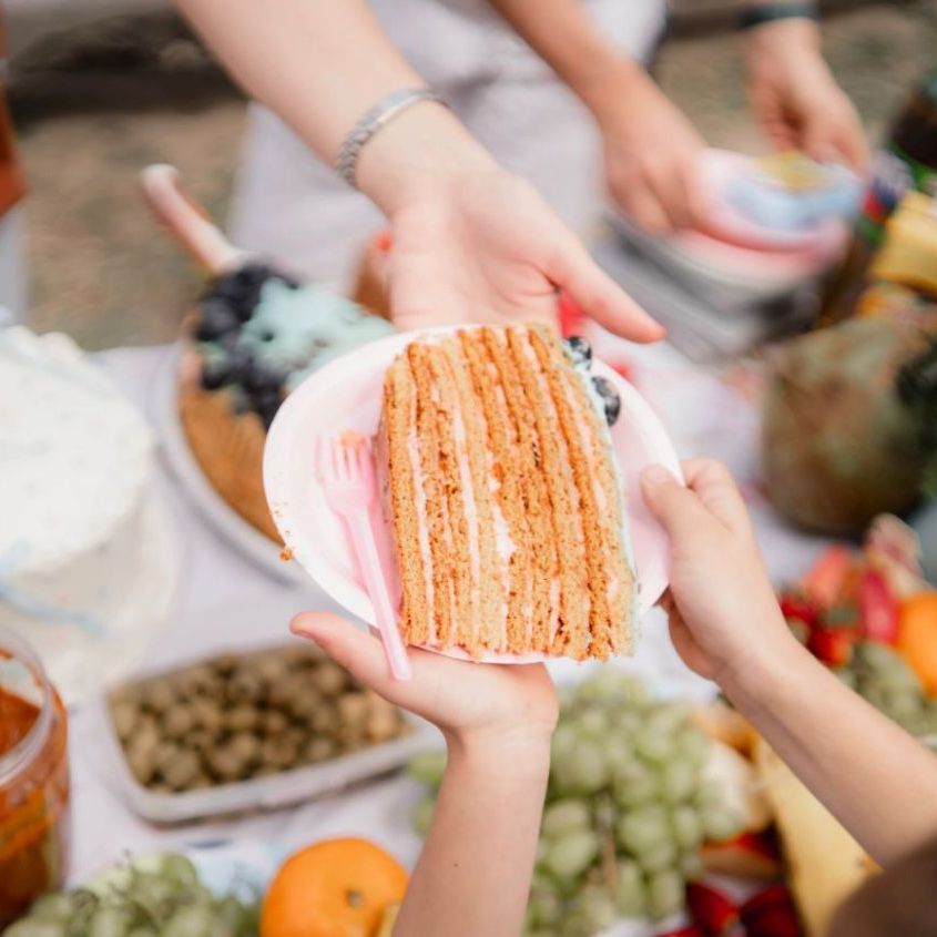 Só um aviso importante: como o bolo é super macio e tem várias camadas, a fatia tem um limite mínimo. Se cortarmos em pedaços muito pequenos, ele perde a estrutura e pode desmanchar. Por isso, recomendamos seguir à risca nossa sugestão de diâmetro e número de porções, tá? Assim todo mundo aproveita o bolo perfeito!